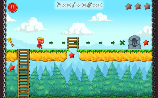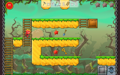 Place ladders, dig through , drop boxes him get portal. Use all stars all levels.