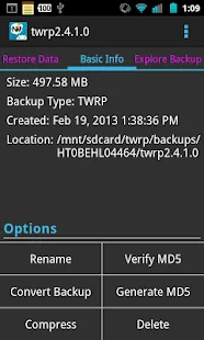 * View basic info Nandroid Manager Pro Key v1.0 backups.