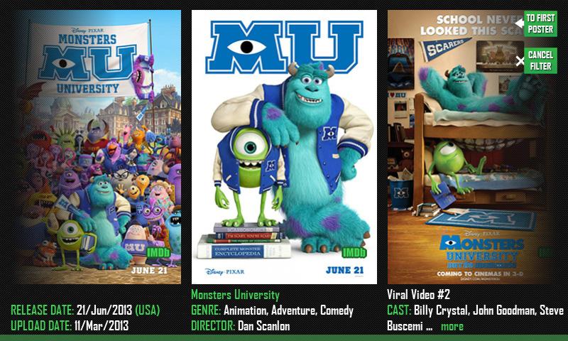 simple gallery-like interface. No need different screens t even need. always just two taps away from watching a trailer.